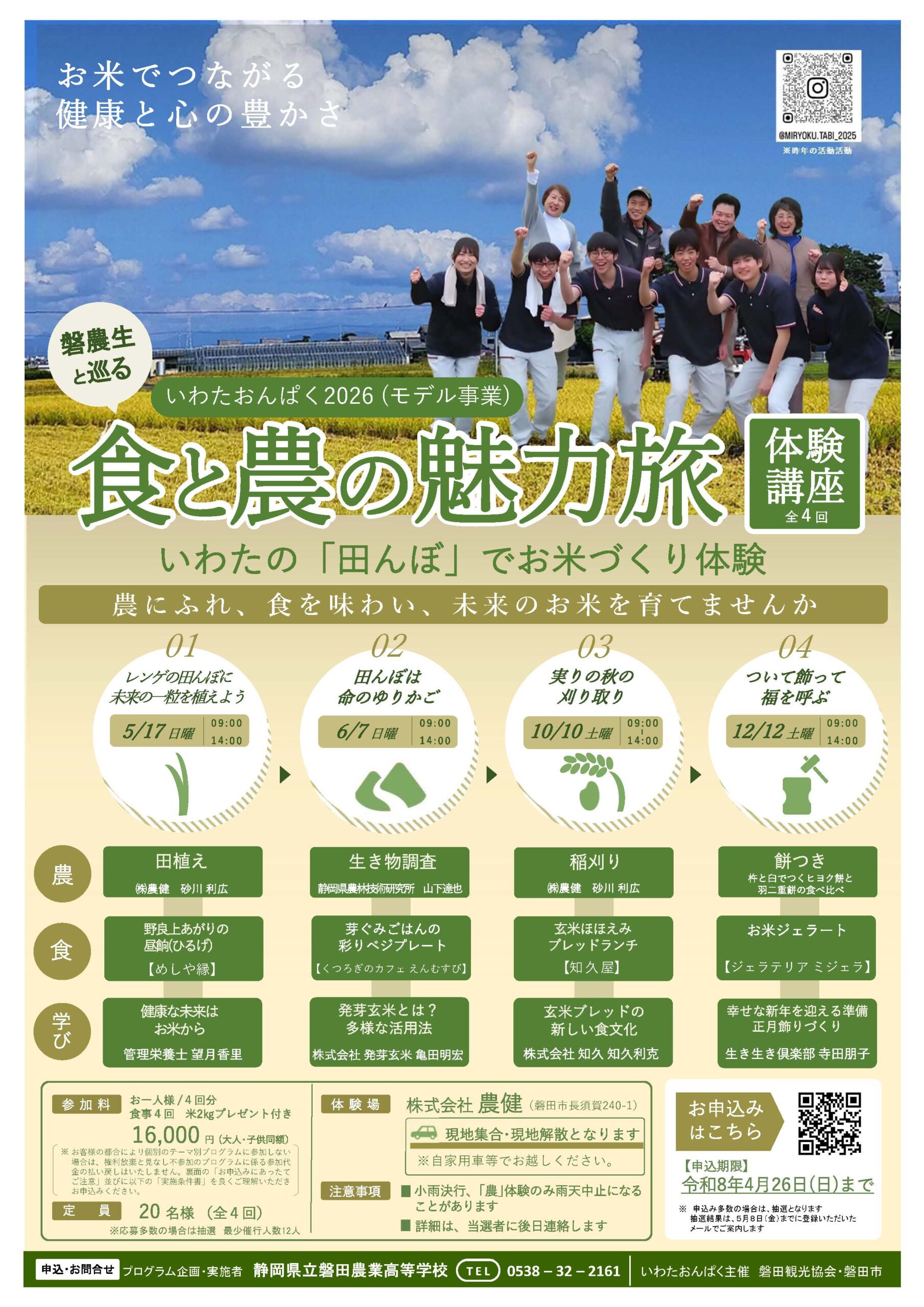 令和8年度の「いわたおんぱく」のトップをきって“いわたおんぱくのモデル事業”として、県立磐田農業高校が企画・実施する〔磐農生と巡る 食と農の魅力旅〕の予約開始のご案内です。